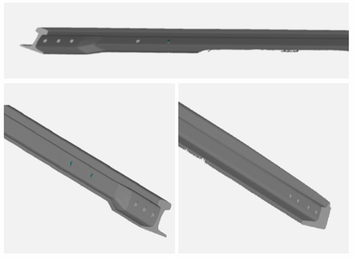 客戶主要產(chǎn)品為鐵路鋼軌和橋梁部件等,鐵路軌道及其部件質(zhì)量關(guān)系到列車的穩(wěn)定運(yùn)行,其安全性要求不言而喻,因此生產(chǎn)出的軌道需要經(jīng)過嚴(yán)格的檢測和校正程序。過去的方法是由工人憑借經(jīng)驗(yàn)判斷軌道的彎曲程度,效率低且精度難以有效控制,客戶希望借助三維掃描技術(shù)對軌道進(jìn)行高效精準(zhǔn)的檢測,以替代傳統(tǒng)方案。