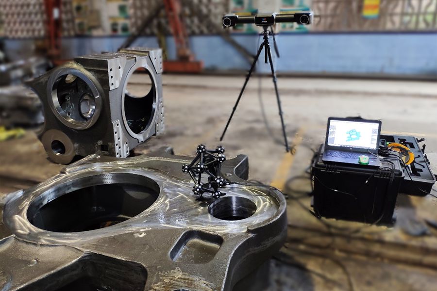 Hyperscan Ultra智能光學(xué)追蹤3D掃描儀因其小巧,便攜,高精度的特點(diǎn),不受工廠復(fù)雜環(huán)境的影響,既能滿足其檢測(cè)要求,又能極大的提高質(zhì)量檢測(cè)的效率,且能兼顧許多傳統(tǒng)檢具無(wú)法檢測(cè)的參數(shù)種類,已經(jīng)逐步被企業(yè)所接受和應(yīng)用,在工業(yè)質(zhì)量檢測(cè)領(lǐng)域得到了廣泛的應(yīng)用。尤其是在鑄造行業(yè),HyperScan Ultra 因其無(wú)需粘貼標(biāo)志點(diǎn),使用便攜等特點(diǎn),在應(yīng)用大型鑄件時(shí)有著快速全面的特點(diǎn),對(duì)提高此類工件檢測(cè)效率有著巨大的提升和檢測(cè)環(huán)節(jié)的補(bǔ)充。